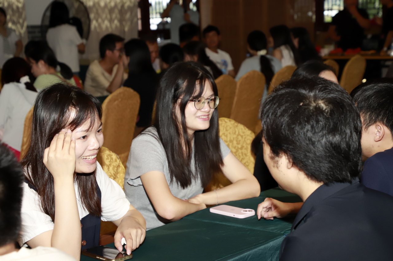 活動于下午3點正式開始,現(xiàn)場通過“盲盒配對”“大風吹”“緣分連連看”等趣味環(huán)節(jié)迅速破冰,青年朋友們逐漸放松身心、融入氛圍。隨后的“甜心心相‘運’”“心有靈犀一線牽”“愛的密碼”等甜蜜闖關游戲,進一步增進了彼此的了解與默契。