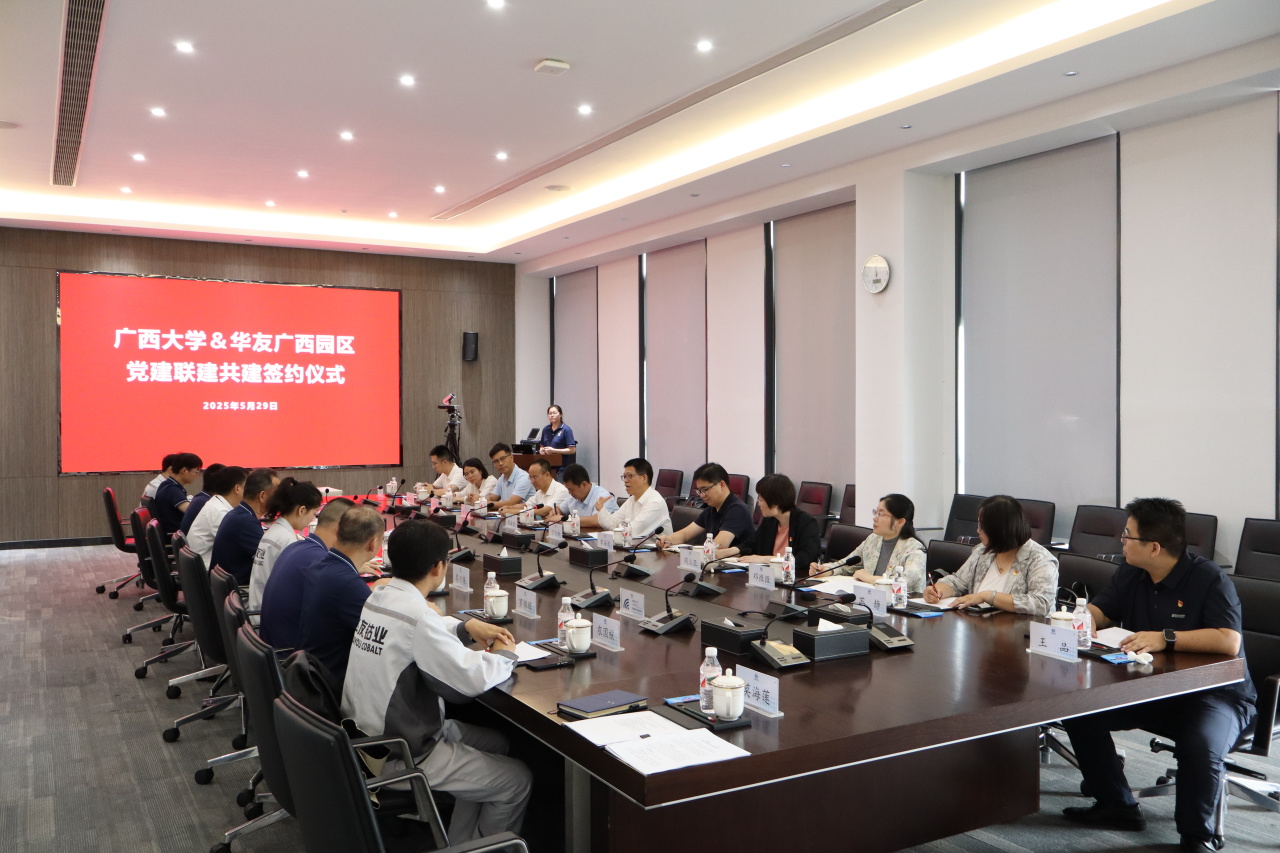簽約儀式上,華友廣西園區(qū)黨委書記徐學(xué)良與廣西大學(xué)資源環(huán)境與材料學(xué)院黨委書記沈大強(qiáng)共同簽署黨委聯(lián)建協(xié)議,明確以黨建引領(lǐng)業(yè)務(wù)發(fā)展,推動(dòng)產(chǎn)學(xué)研深度融合,實(shí)現(xiàn)資源共享、優(yōu)勢互補(bǔ)、協(xié)同共進(jìn)。廣西大學(xué)黨委副書記寧旭初在座談會(huì)上講到,此次聯(lián)建共建是推動(dòng)基層黨組織建設(shè)走深走實(shí)的重要舉措,也是實(shí)現(xiàn)“黨建+產(chǎn)業(yè)”“黨建+教育”深度融合的創(chuàng)新實(shí)踐。