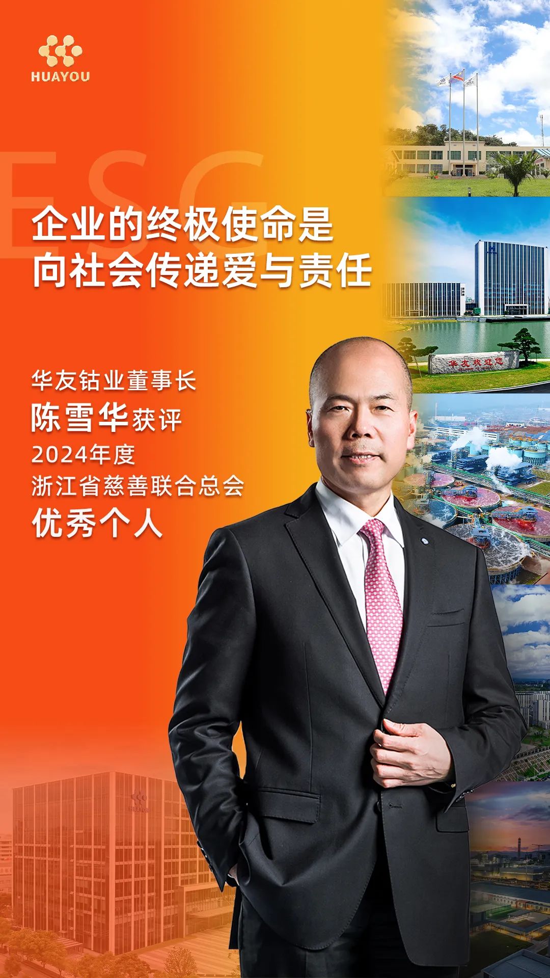 Chairman Chen established the "Huayou Holding Charity and Common Prosperity Foundation" to support the development of Quzhou City's four-province border common prosperity demonstration zone. The foundation engages in philanthropic activities across education, poverty alleviation, and rural revitalization. In 2024, cumulative charitable investments reached RMB 69.2516 million, reflecting Huayou's ongoing commitment to societal love and responsibility, embodying its belief that "an enterprise's ultimate purpose is to convey love and responsibility to society." Over the past five years, Chen has earned titles including China's National Ten Thousand Talents Plan Leading Entrepreneur in Technology Innovation, China's Listed Company ESG Pioneer, Top Ten Influential Zhejiang Business Leaders, and Zhejiang Province Outstanding Entrepreneur. The company has also been ranked among China's Top 500 Enterprises, the Global Top 500 New Energy Enterprises, and six other authoritative lists, and was awarded "High-Quality Development Leading Enterprise" by the 7th World Zhejiang Entrepreneurs Convention—a testament to the symbiosis of commercial success and social responsibility.