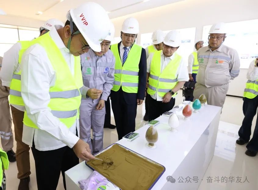 Rosan部長一行先后參觀了華飛項(xiàng)目的控制中心、高壓酸浸車間及華能項(xiàng)目的展廳、質(zhì)量檢測中心、主控中心和生產(chǎn)車間,詳細(xì)了解了華友印尼緯達(dá)貝鋰電材料產(chǎn)業(yè)一體化綠色制造基地各項(xiàng)目的工藝流程、技術(shù)應(yīng)用、生產(chǎn)規(guī)模、產(chǎn)能產(chǎn)量等最新進(jìn)展以及ESG建設(shè)等方面的情況。